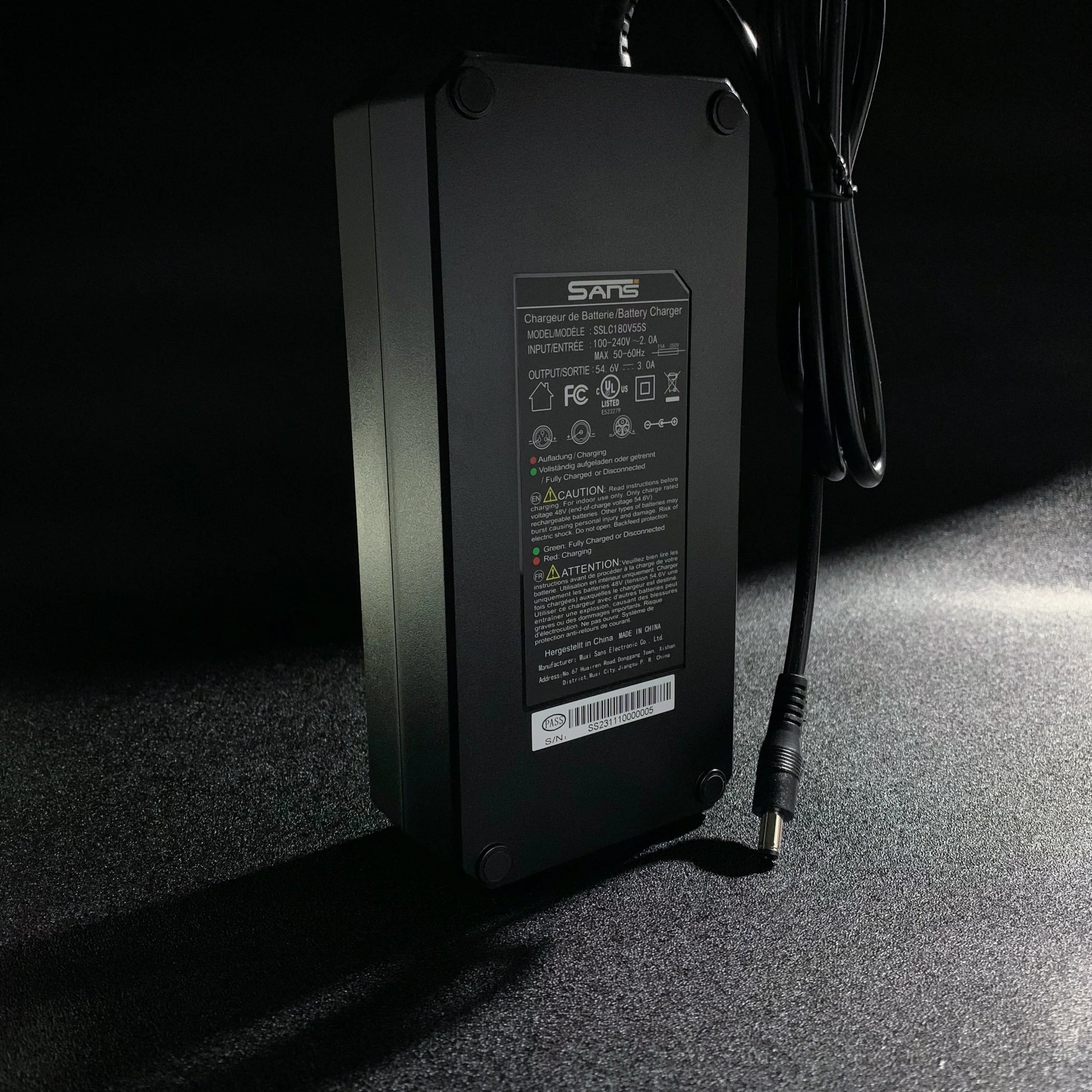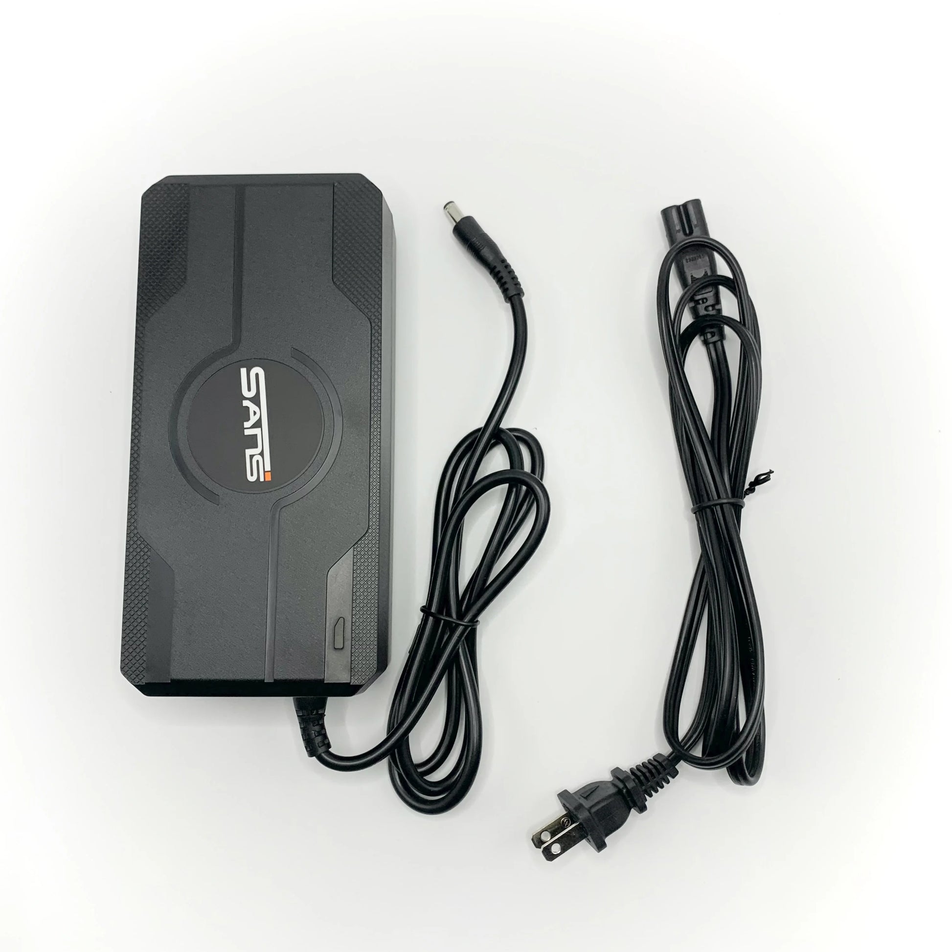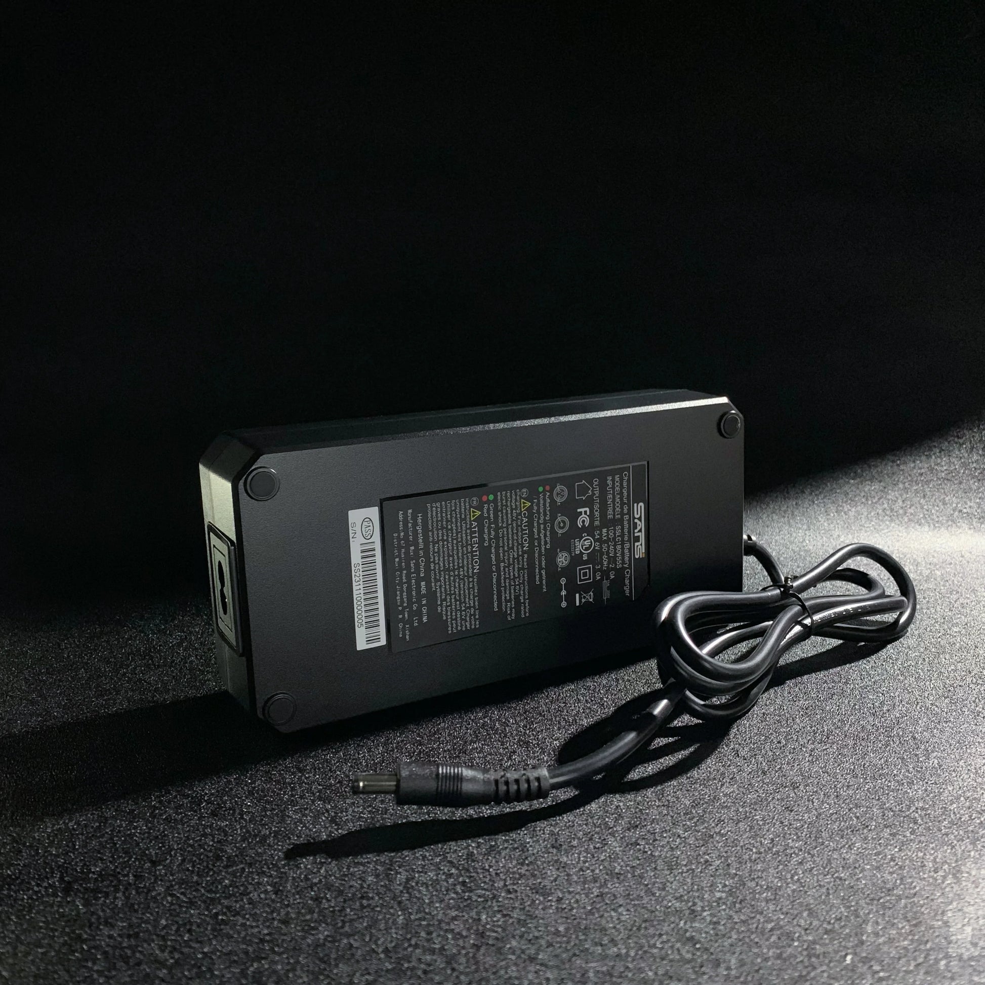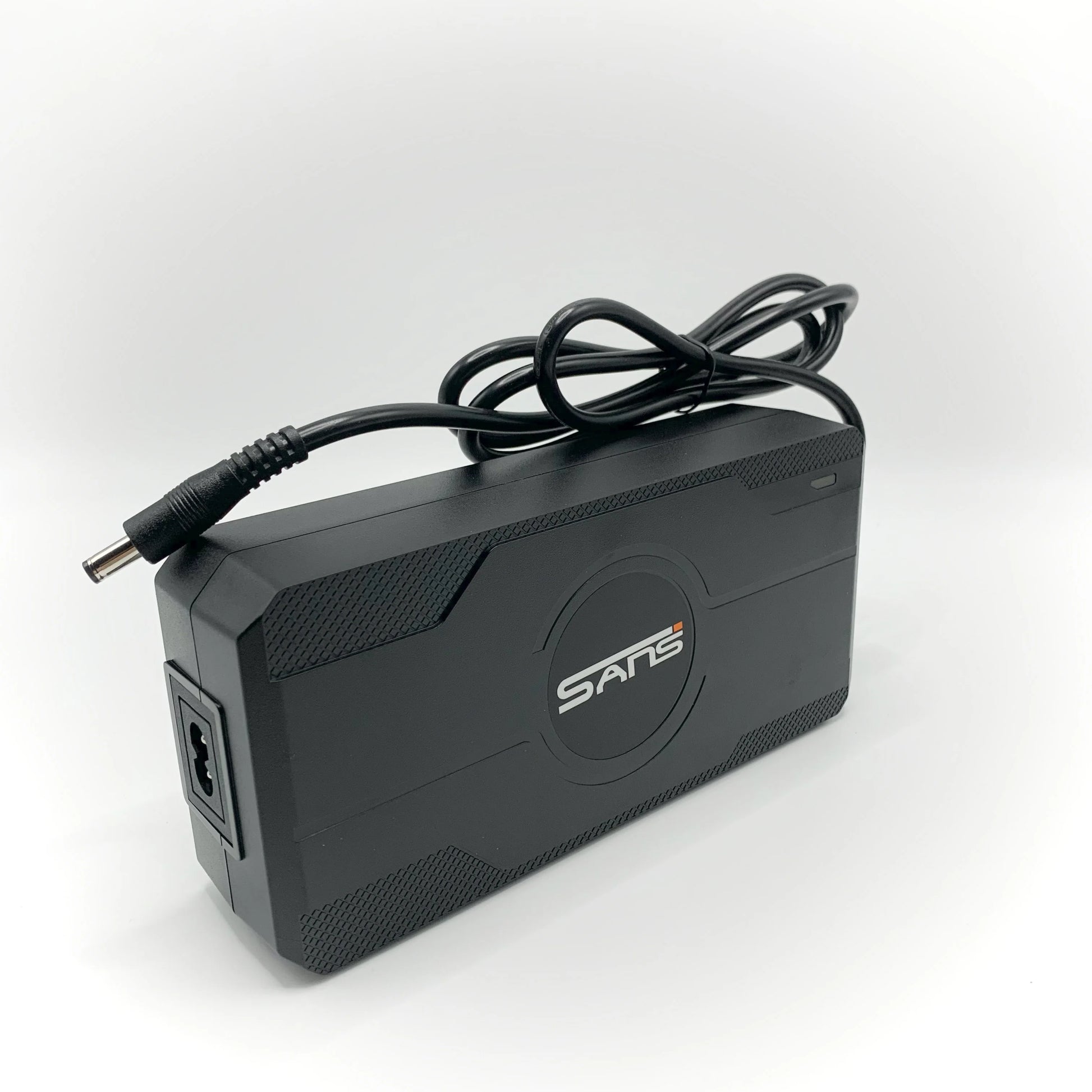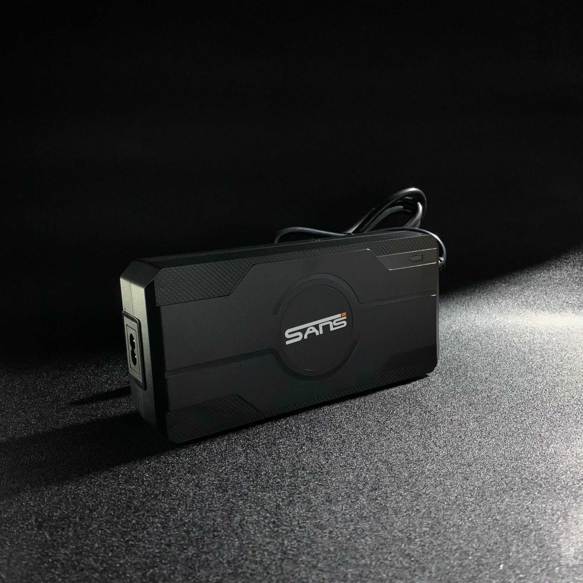When the charge finished, unplug the power cord but battery charger is still connected, battery energy will not flow backward into charger.